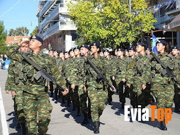 Ρίγη συγκίνησης σκόρπισαν οι στρατιώτες του αγήματος της Σχολής Πεζικού στην παρέλαση για την επέτειο της 28ης Οκτωβρίου στη Χαλκίδα, που παρέλασαν αμέσως μετά τη μαθητική παρέλαση.